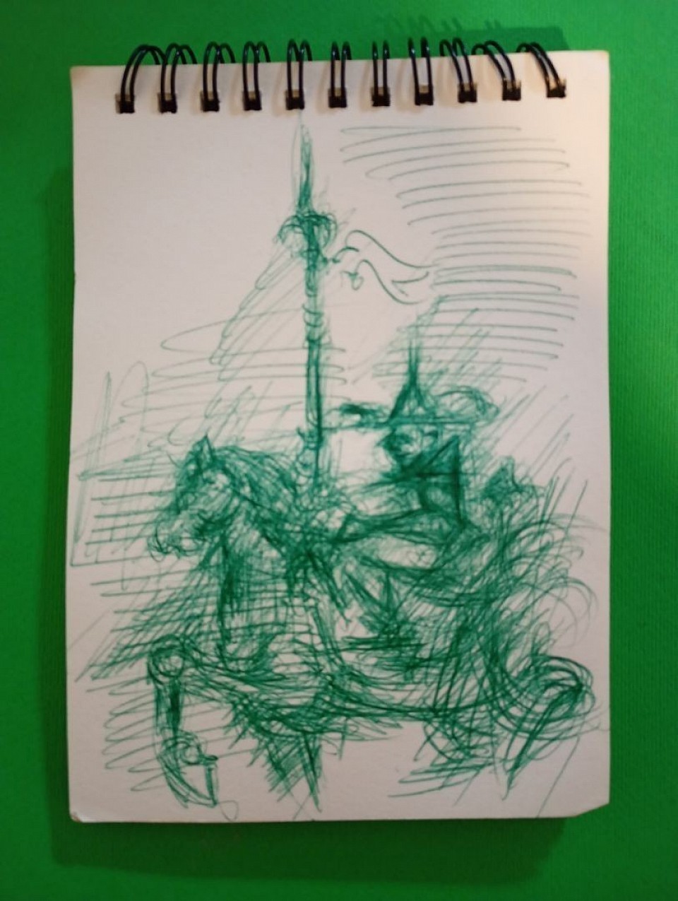 " Artificial intelligence is no match for natural stupidity " [ Albert Einstein ] ; Medium : carbon pencils and white gesso, Diamentions: 35.3 X 56.3 cm, Cycle: Tuscan Preminitions. © 1st March AD.2025; Waldemar A.S. Buczynski onwards. ☆☆☆ This work was inspired by the pilot - Antoine Saint de Exupery of Lyon [ 1900 - 1944 ] and His book :" The Little Prince "; ancient designs of the Italian/Roman helmets and painter Rembrandt Van Rijn ☆☆☆